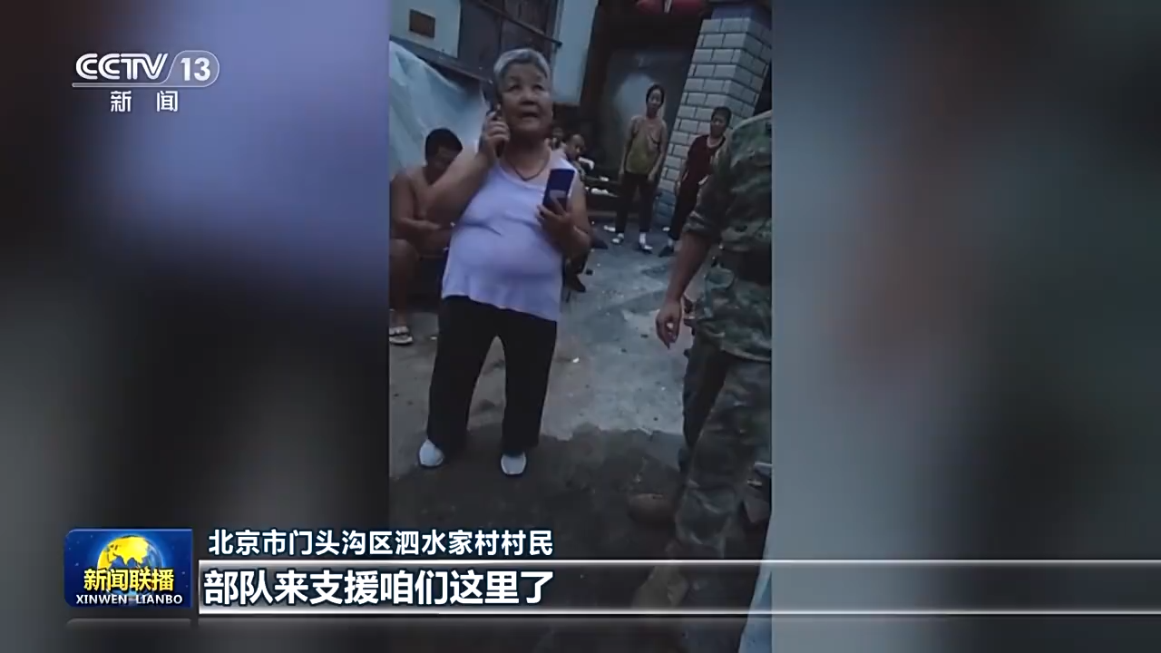 北京市门头沟区泗水家村村民:部队来支援咱们这里了。你别哭,你别哭,解放军在这呢,你们就放心吧。谢谢解放军们。