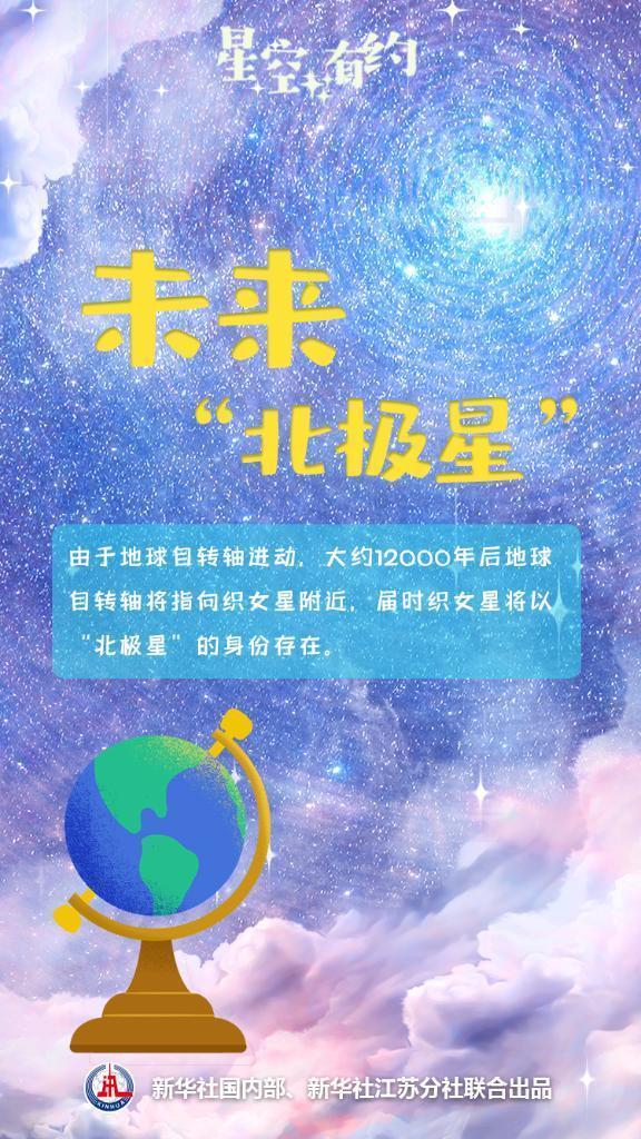 值得一提的是,作为北半球第二明亮的恒星,织女星在大约14000年前曾是我们的“北极星”。由于地球自转轴进动,大约12000年后,地球自转轴将再次指向织女星附近。届时这颗亮星与地轴相距约5度,将再次以“北极星”的身份存在,成为史上最明亮的“北极星”。