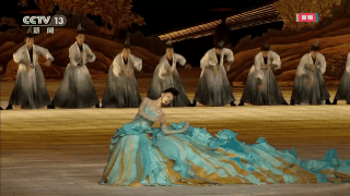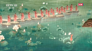 随着场景变换,整个场地内呈现出一片湖光山色。一片硕大的荷叶在水面绽开,江南采莲、莲叶田田,为我们展示了《烟雨染江南》如诗如画的美景。