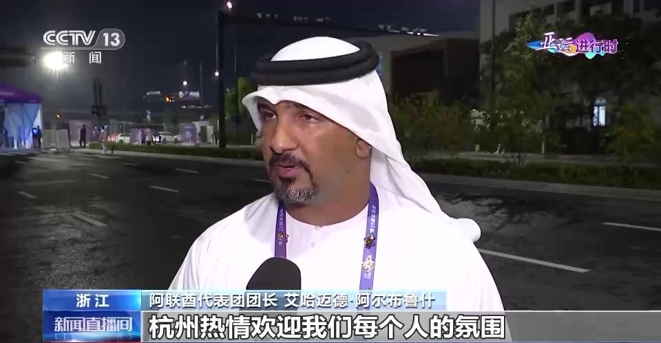 阿联酋代表团团长 艾哈迈德·阿尔布鲁什:整个开幕式都在营造着杭州热情欢迎我们每个人的氛围,增进了我们亚洲之间的友谊。从开幕式到杭州这座城市,再到志愿者和每一个工作人员,他们实现了承诺,为我们打造了一份难忘的记忆。