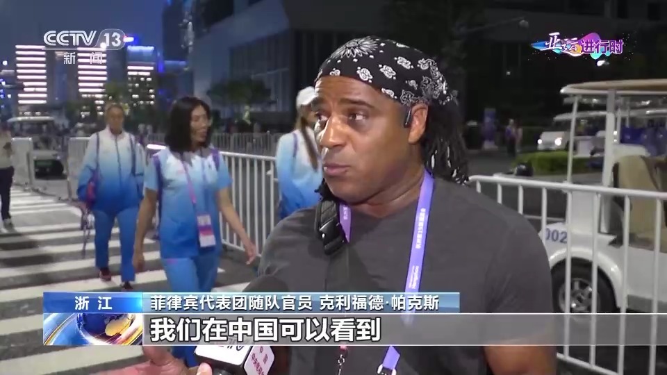 温州亚运分村安保组工作人员 郑巨峰:我们看到每个国家的运动员都满怀希望,满怀好的心情来参与这个盛大的盛会,期待着各国运动员能够赛出水平、赛出风格。