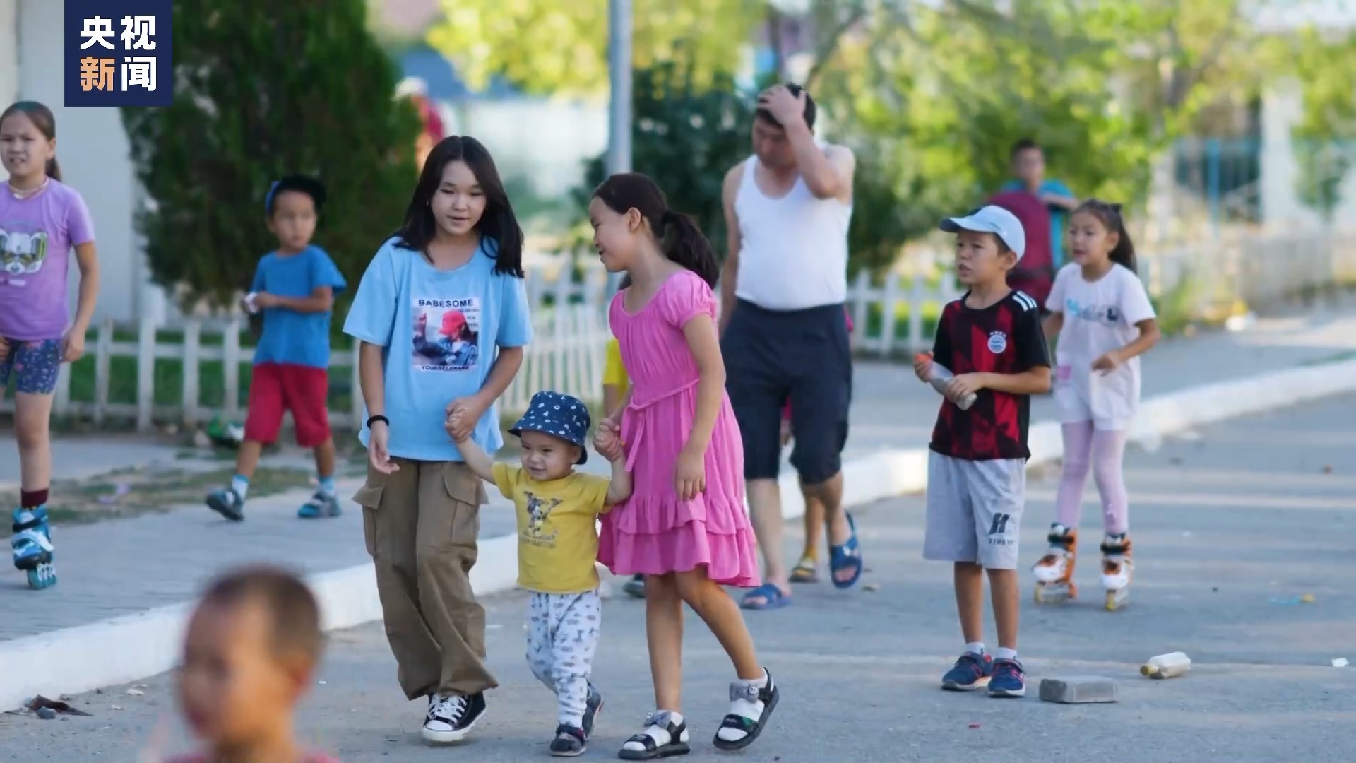 努尔肯特居民:这里很好玩,你看有很多孩子在踢足球。