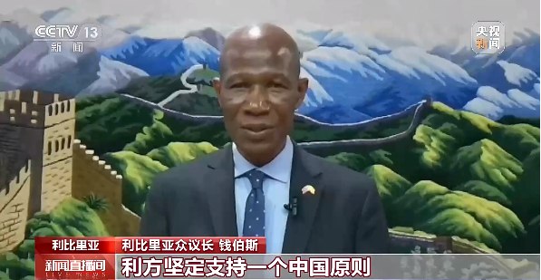 利比里亚众议长 钱伯斯:我们祝愿利比里亚和中国的合作伙伴关系能够不断发展。利方坚定支持一个中国原则。我们祝愿中国人民国庆节快乐,同时祝愿中国和利比里亚友谊地久天长。