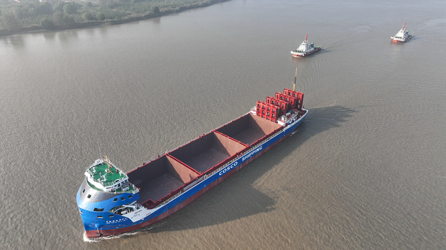 中远海运万吨级电动集装箱船长江试航