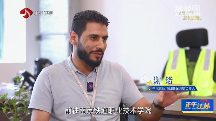 中航国际项目维保调度负责人谢诺:“我叫谢诺,是斋月十日城铁路的一名工程师。2018年,我和18名埃及同学一起,前往南京铁道职业技术学院埃及订单班学习。”