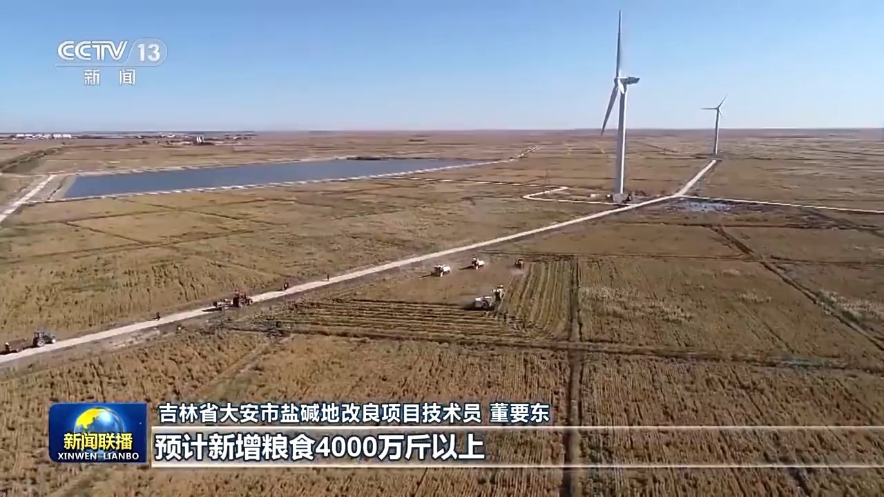 吉林省大安市盐碱地改良项目技术员 董要东:今年我们改良了5万亩盐碱地,预计新增粮食4000万斤以上,是个大丰收。
