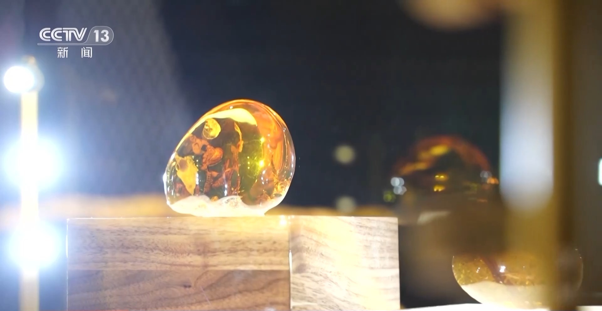 白岩松:几年前,进博会开幕的时候,人们用四个字来做表达,那就是未来已来。的确,进博会让大家更加关注未来,但是千万别忘了,在进博会的时候人们也能看到非常悠久的历史,比如说一亿年前,一滴树脂裹着动植物坠落到大地,穿越一亿多年的这种时光,变成了极其漂亮的琥珀。一亿年前可是白垩纪的时代,恐龙还是这个世界的主角,但是这些琥珀穿越岁月的时光之后,从瑞典来到了这届的进博会,也就是现在我所看到的这个展览空间里头的这些展品。