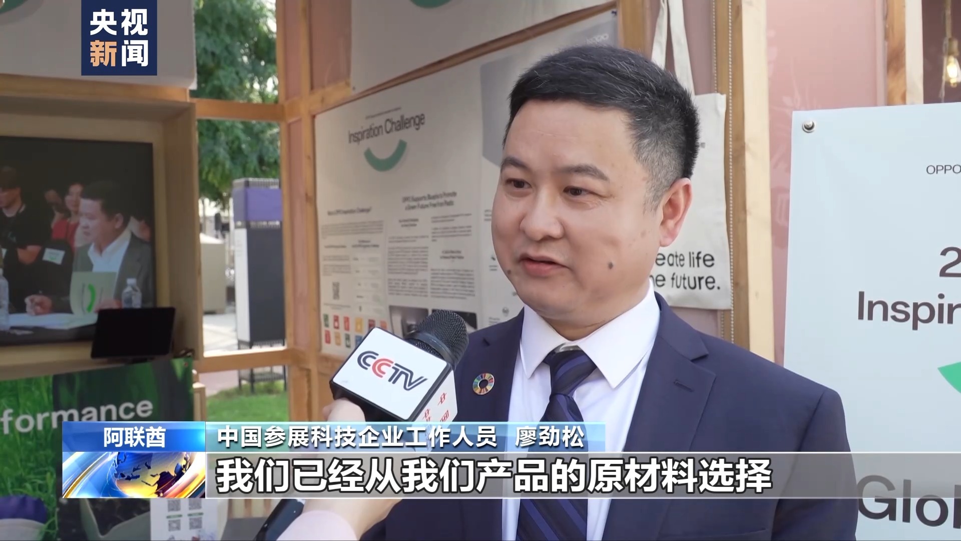 中国参展科技企业工作人员 廖劲松:我们已经从我们产品的原材料选择,生产制造,产品的使用,一直到产品的回收,建立了全生命周期的绿色管理。