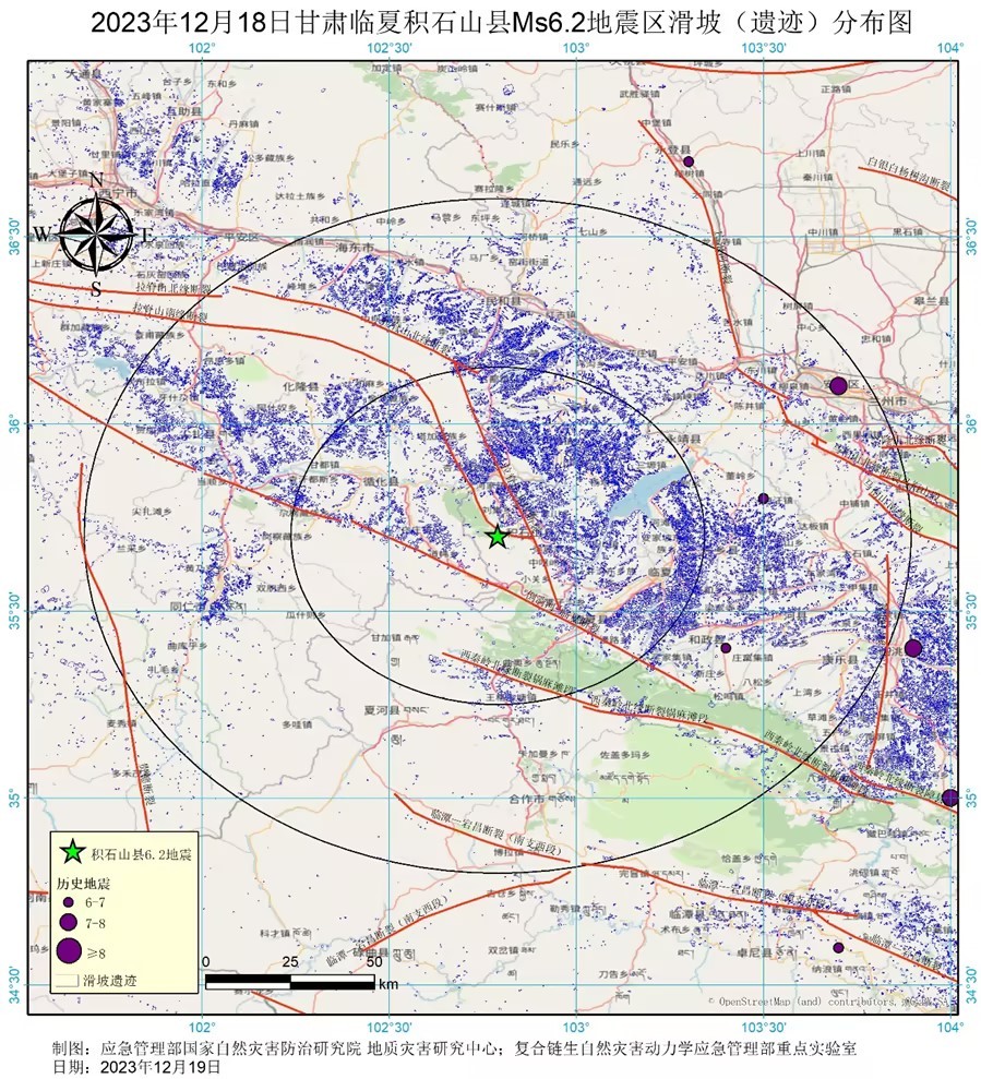 2023年12月18日甘肃临夏积石山县Ms6.2地震应急产品:地震区滑坡 (遗迹) 分布