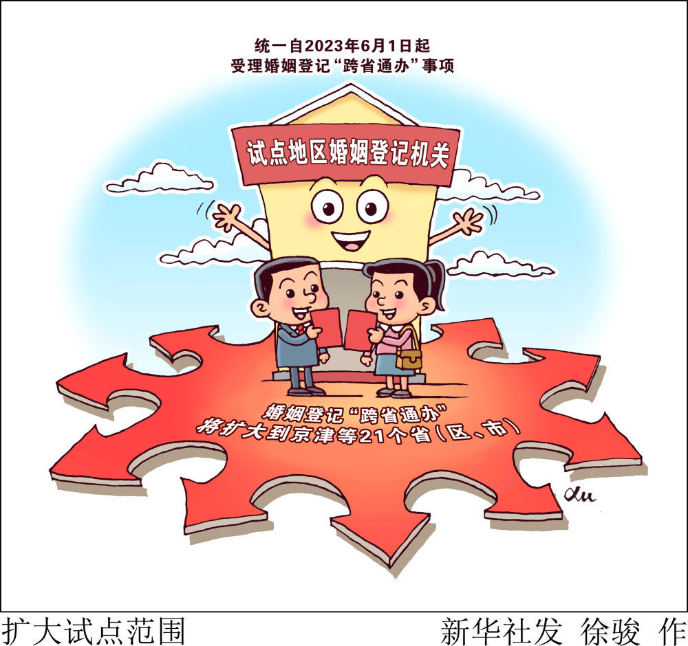 人不在户籍地生活却有婚姻登记需求,如何免去奔波之苦?6月1日起,在前期试点基础上,北京、天津、内蒙古等21个省(区、市),实施内地居民婚姻登记“跨省通办”试点,满足群众异地办理婚姻登记的需求。