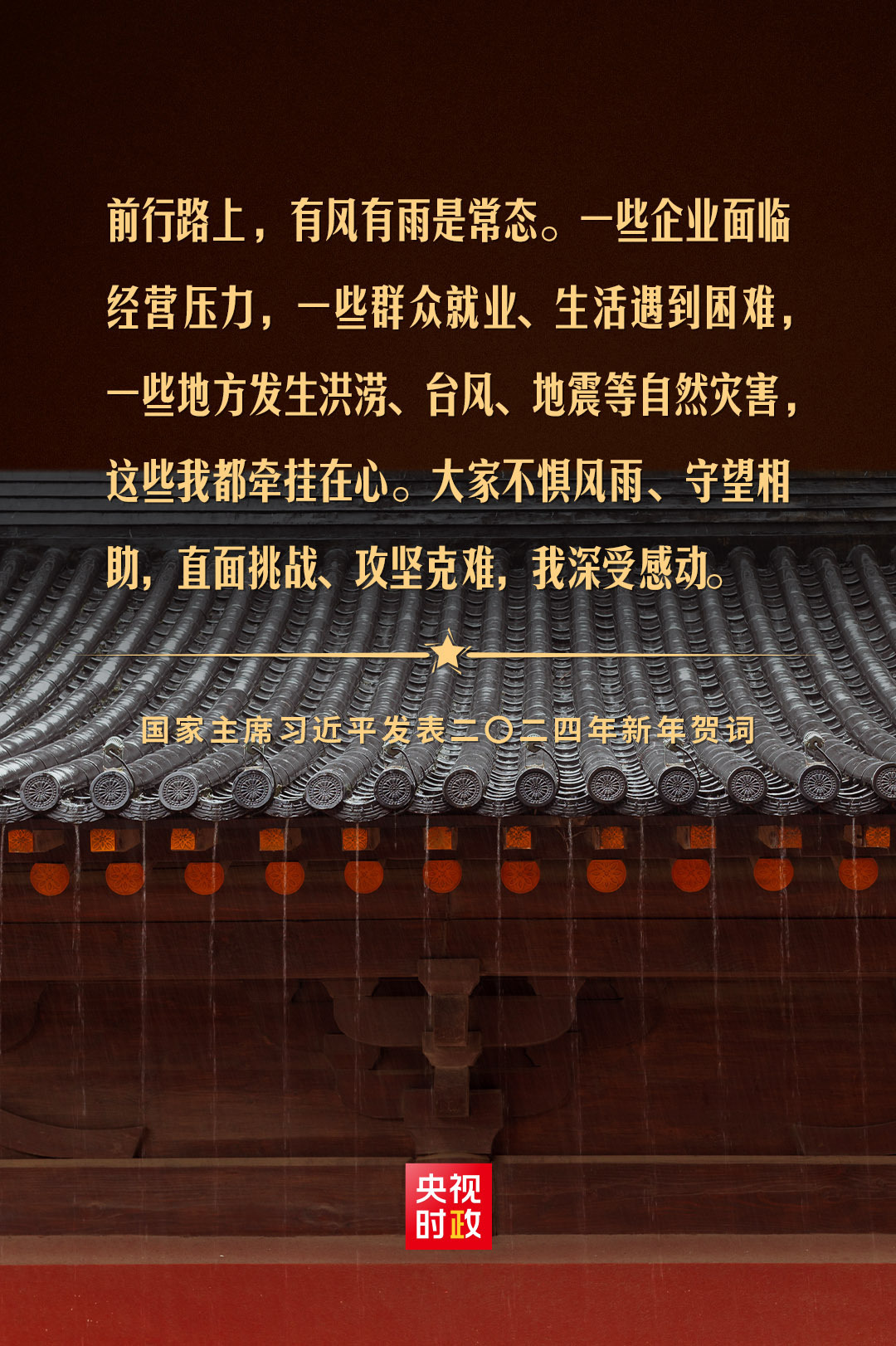 新年前夕,国家主席习近平通过中央广播电视总台和互联网,发表了二〇二四年新年贺词。