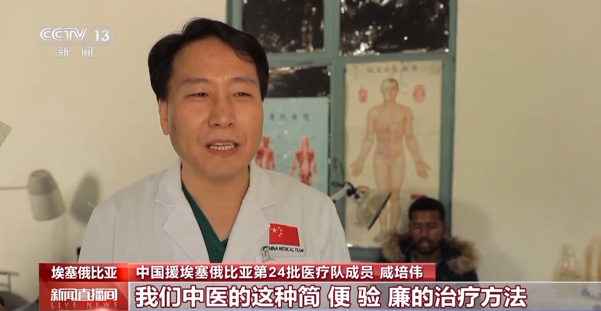 中国援埃塞俄比亚第24批医疗队成员 咸培伟:我们中医的这种简、便、验、廉的治疗方法,对非洲,特别对(埃塞)当地人民,肯定是大有用武之地,花费少,简单方便,然后疗效又好,受到了当地很多人的欢迎。