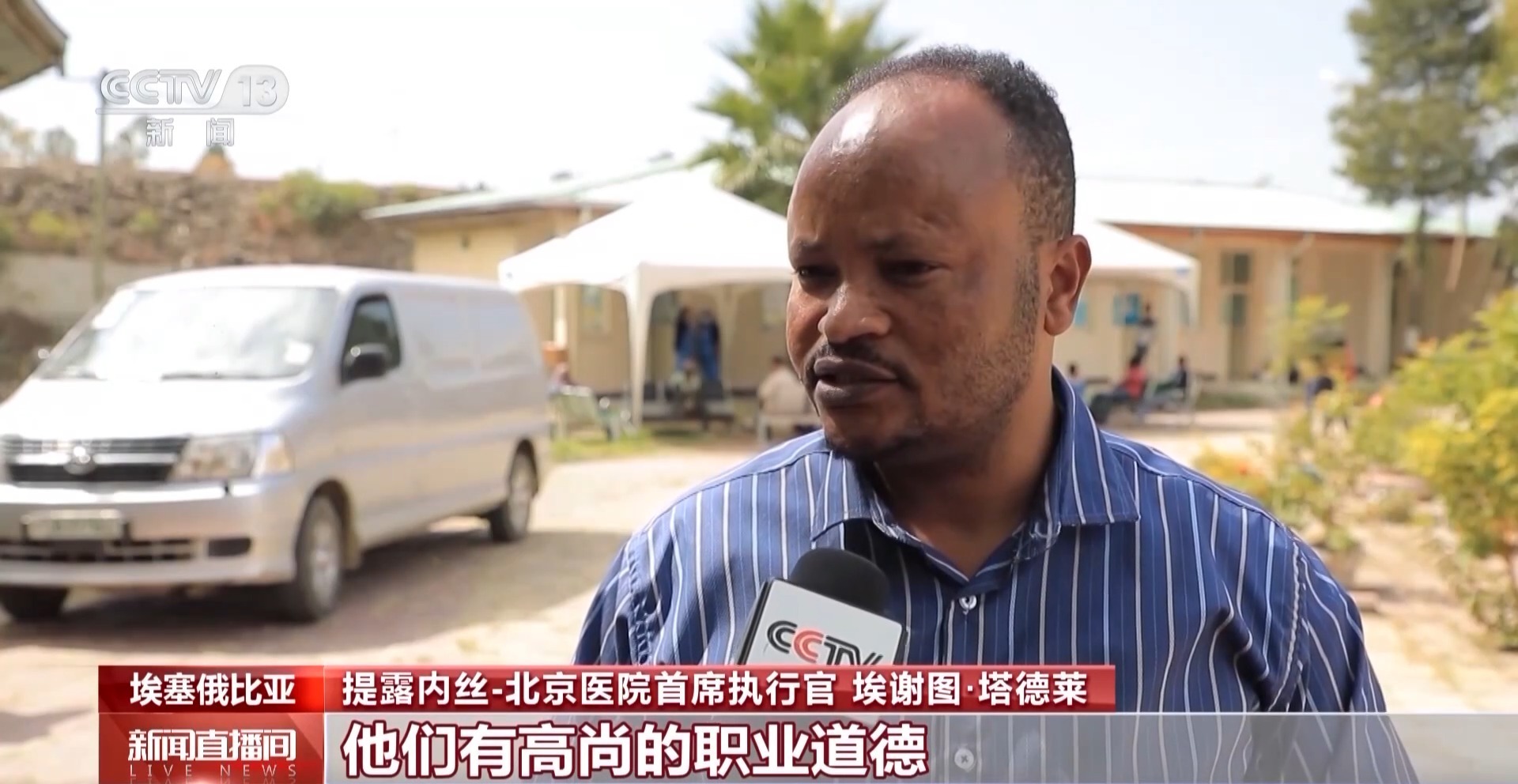 提露内丝-北京医院首席执行官 埃谢图·塔德莱:(提露内丝-北京)医院刚落成时,我们只有两名专家,现在医院里的埃塞俄比亚专家达到40至43名,加上在这里执行援助任务的中国医疗队的16名专家,我们医院的专家人数已有近60人。我必须对来这里援助的中国医疗队表示感谢,他们有高尚的职业道德,守时、敬业、技术精湛,从中医门诊到在医院进行的大型手术,他们的所有表现都非常出色,极具成效。