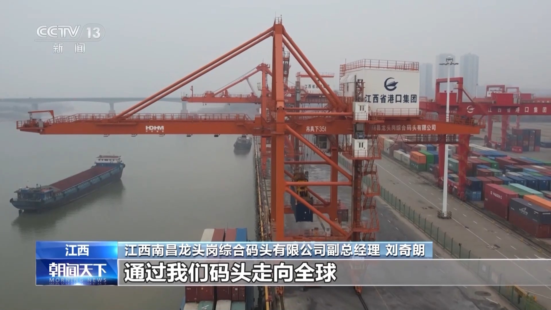 依托赣江水道承接南北、通江达海的独特优势,江西建设码头、物流园、航道等20多个水运项目。这几天,在南昌龙头岗码头,成吨从国外进口的锂矿石、北方丰收的玉米大豆等作物正在卸载。
