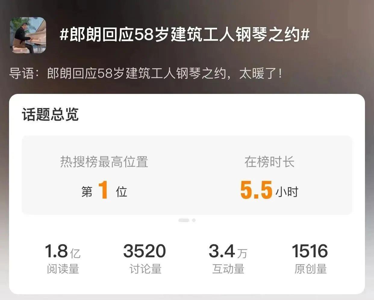 这几天,#郎朗回应58岁建筑工人钢琴之约#登上微博热搜榜第1位,#58岁弹钢琴的工人大叔受邀看春晚##土豆苞米的故事她写了20万字##50岁田鼠大婶在线更新春晚日记##50岁农民诗人接春晚邀约心怦怦跳#等话题登上多平台热搜,人民日报、光明日报、学习强国、共青团中央、中国日报、中国青年报、中国妇女、中国妇女报等官方媒体陆续跟进报道。
