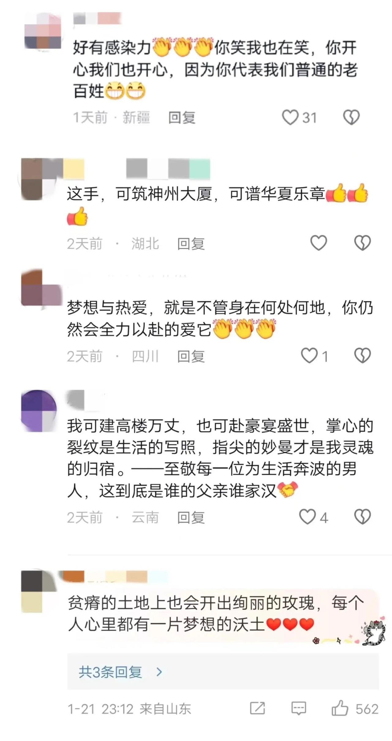 不少同是工人的网友留言,字里行间都是兴奋与喜悦,“老易是我们建筑工人的代表,春晚邀请他,我们替他骄傲,也为自己自豪!”