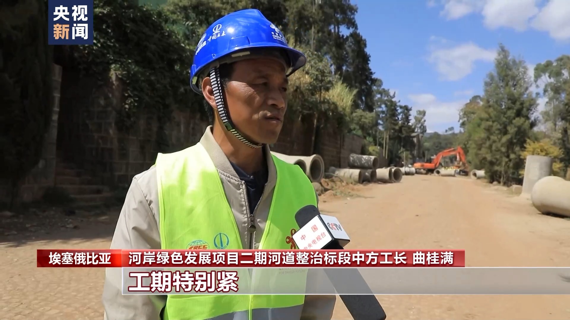 河岸绿色发展项目二期河道整治标段中方工长 曲桂满:工期特别紧。我们将在三月份雨季之前要把河道两岸10.8公里,五千多根涵管全部铺到这个河里。
