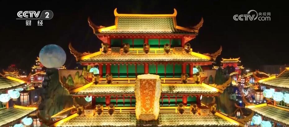 当夜幕降临,青岛明月·山海间景区华灯初上。璀璨的国潮彩灯与街区内山海经主题的奇珍异兽雕塑、建筑交相辉映,来自五湖四海的特色美食、精美的文创产品让游客沉浸式体验浓浓的中国年味。