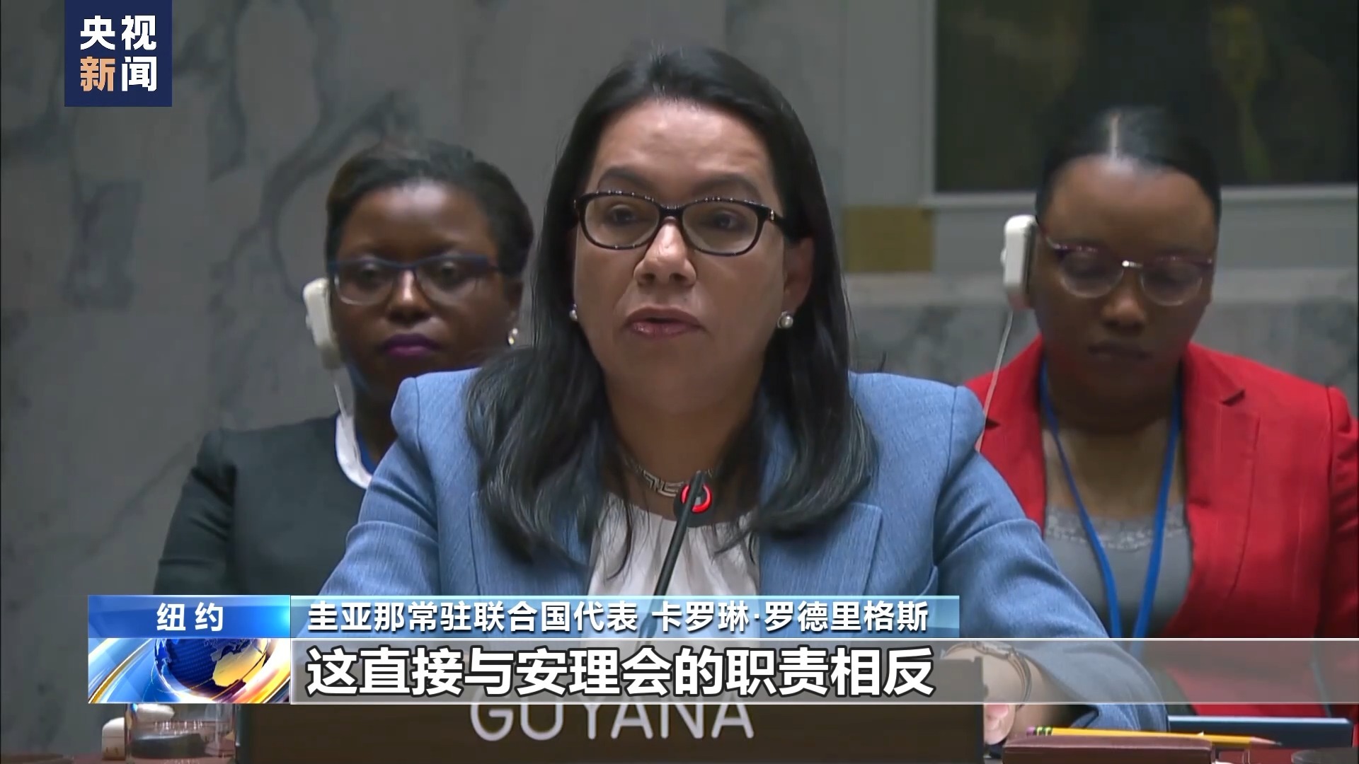 圭亚那常驻联合国代表 卡罗琳·罗德里格斯:我们要怎么支持在加沙的“正在持续和未来的军事行动”?只要采取措施,“大量减少平民的伤害”这一说法在草案的讨论中被多个成员国拒绝。对圭亚那而言,这直接与安理会的职责相反,开启危险的先例。