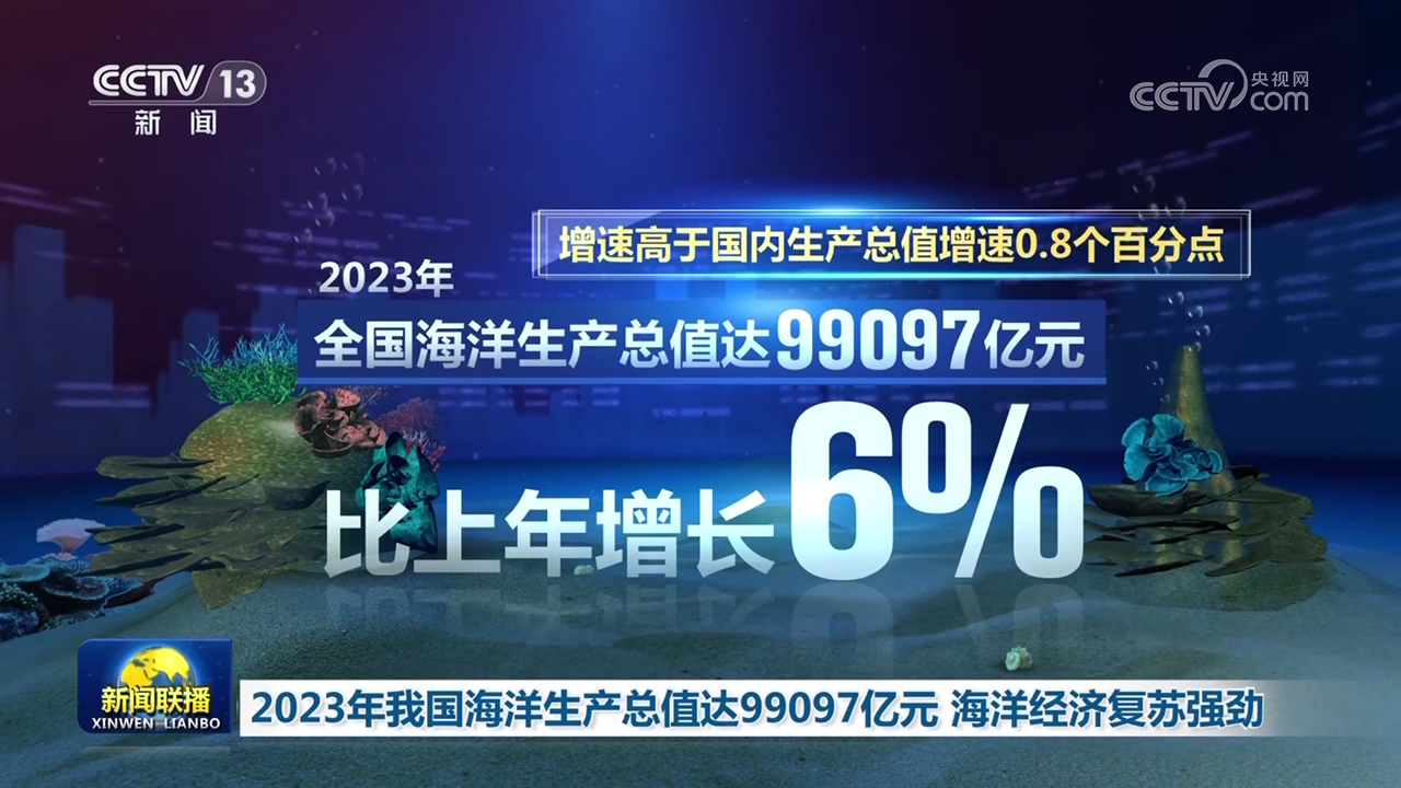 央视网消息(新闻联播):记者从自然资源部了解到,2023年,我国海洋经济复苏强劲,量质齐升。