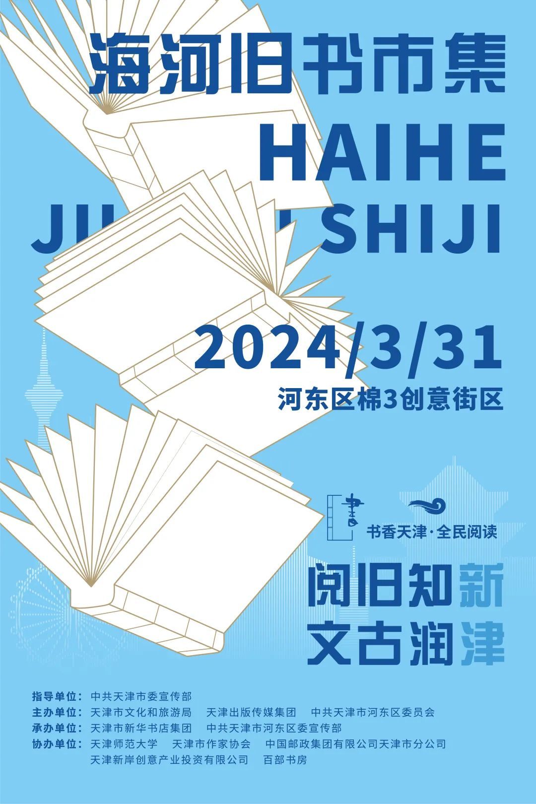 同时,还在天津图书大厦、天津市古籍书店、天津市新华书店集团所属书店、滨海新区新华书店、蓟州区新华书店、广州购书中心天津店、内山书店、百部书房等场所,设立海河旧书市集分会场。