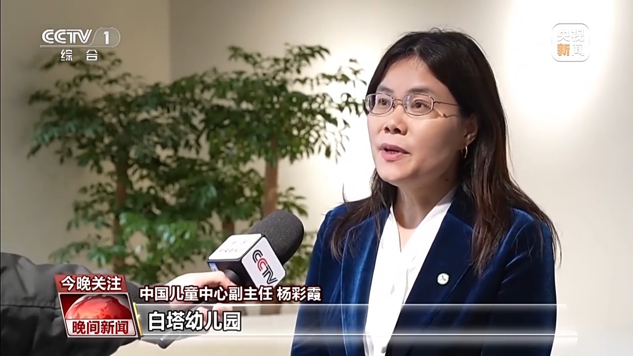 中国儿童中心副主任 杨彩霞:白塔幼儿园是中国儿童中心进行技术支持的幼儿园。儿童中心把它四十多年的一些优秀的儿童教育的理念,运用在这个幼儿园中间,让白塔幼儿园的孩子站在国家的高点,感受未来的变化。
