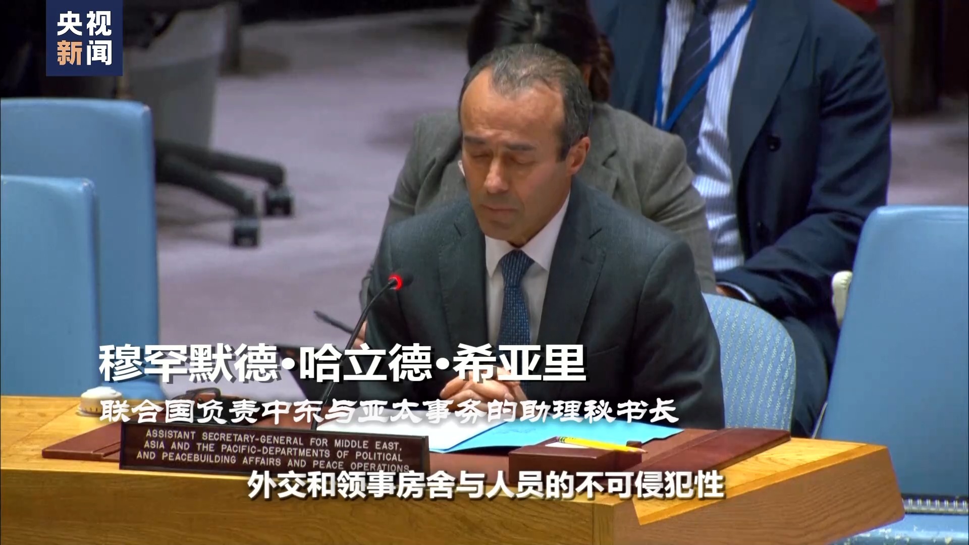 联合国负责中东与亚太事务的助理秘书长 穆罕默德·哈立德·希亚里:外交和领事房舍与人员的不可侵犯性必须根据国际法在一切情况下得到尊重,成员国的主权和领土完整必须根据国际法得到尊重。