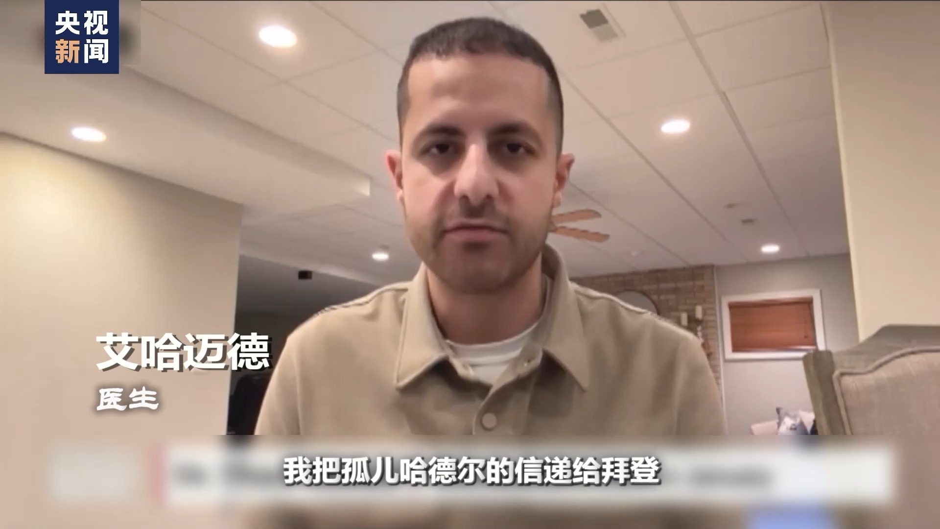 医生 艾哈迈德:我把孤儿哈德尔的信递给拜登,然后离开了会场。