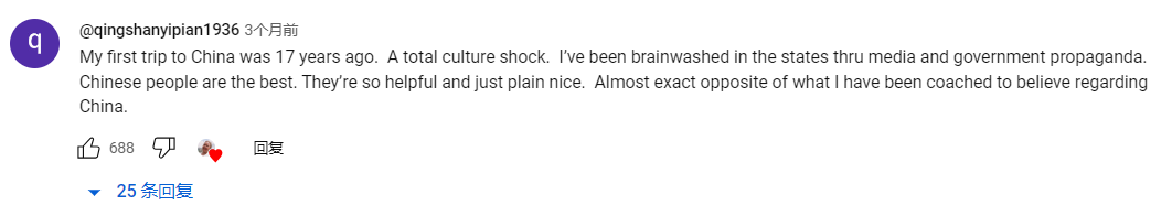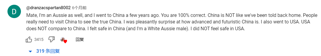 3:视频评论区往往会有不少来过中国的外国人发评论说中国完全和西方媒体宣传的不一样,西方媒体上关于中国的信息很多,但基本都是负面信息。