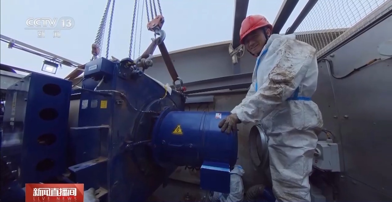 机舱罩外部打开之后,马亮和他的搭档顺利进入舱内,在这里,他们要把需要更换的发动机拆除下来。