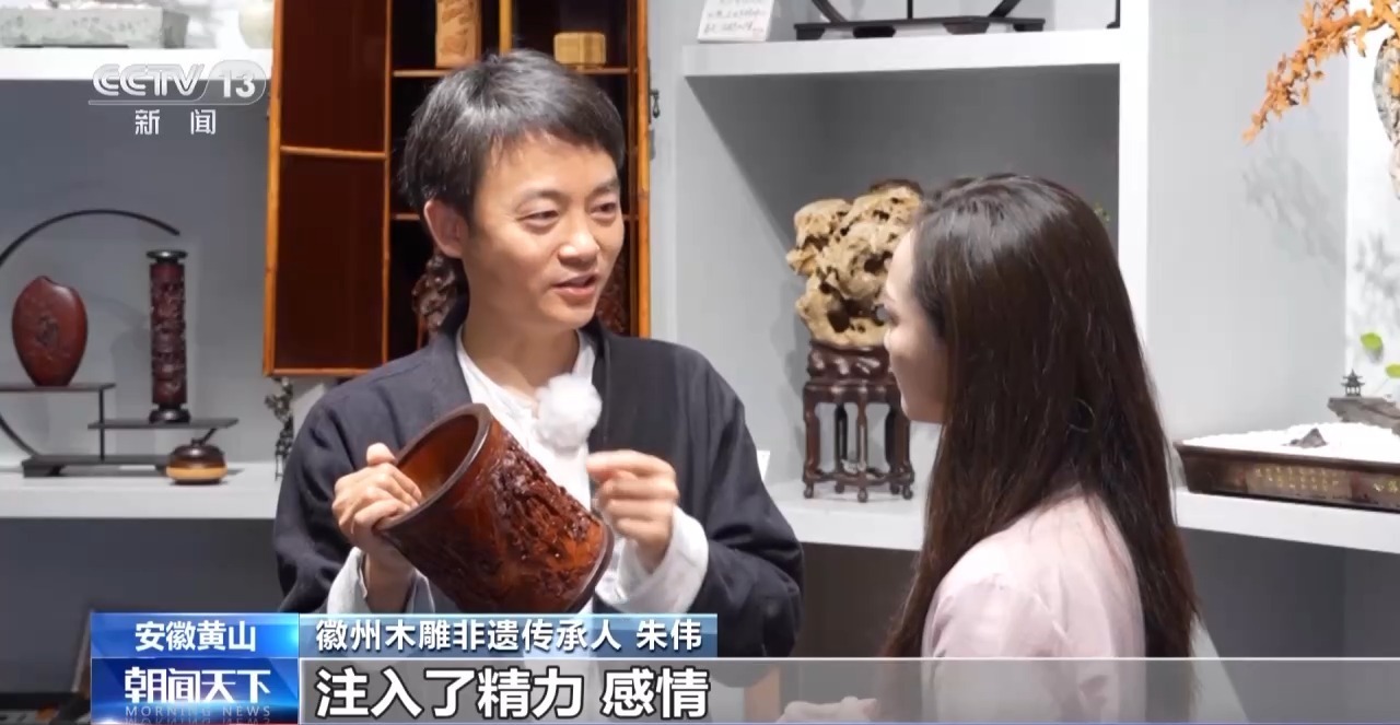 徽州木雕非遗传承人 朱伟:一件作品从穿短袖刻到穿棉袄,又从穿棉袄刻到穿短袖,春夏秋冬,注入了精力、感情,是有生命力的。