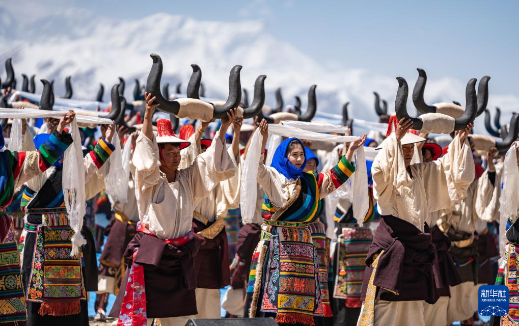 舞蹈演员正在纳木错开湖活动现场表演(5月19日摄)。
