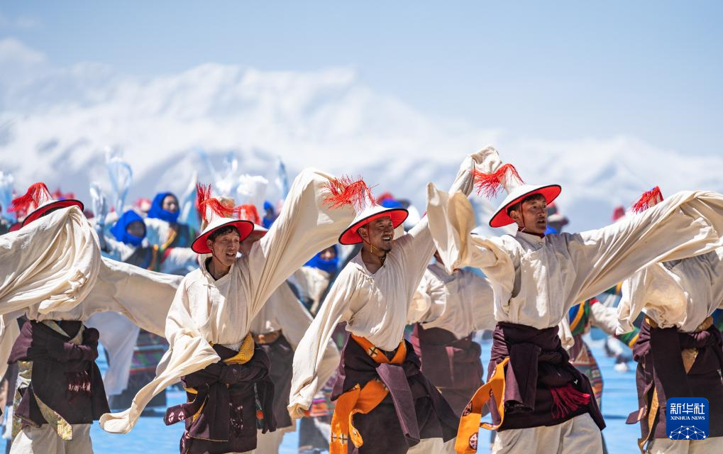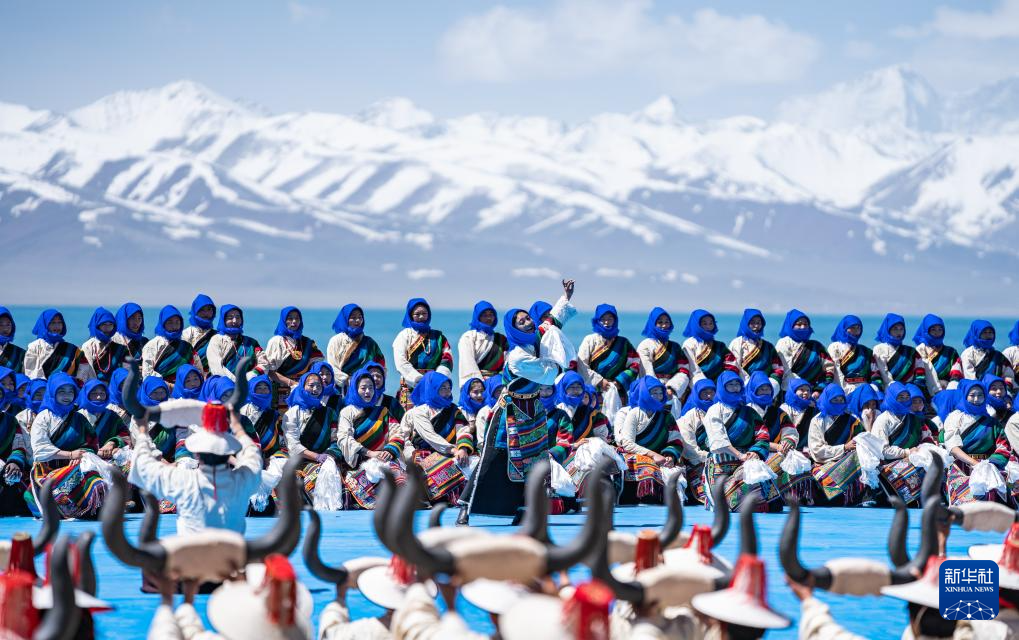 舞蹈演员在纳木错开湖活动现场表演(5月19日摄)。