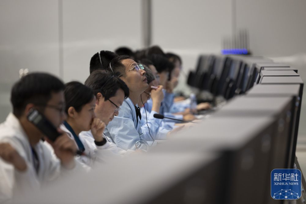 6月2日,北京航天飞行控制中心工作人员在监测嫦娥六号着陆月背动态。
