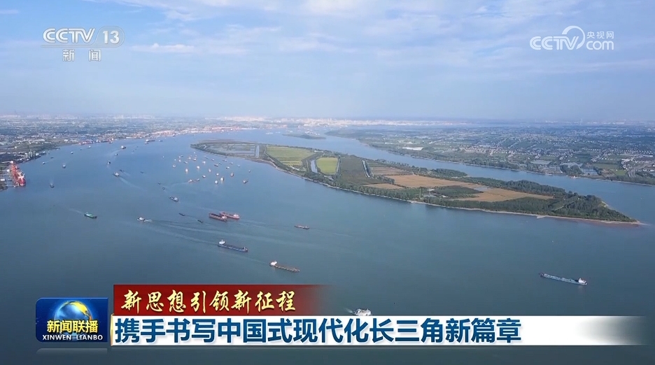 央视网消息(新闻联播):习近平总书记指出,深入推进长三角一体化发展,对于我国构建新发展格局、推动高质量发展,以中国式现代化全面推进强国建设、民族复兴伟业,意义重大。牢记总书记嘱托,沪苏浙皖三省一市紧扣一体化和高质量两个关键词,推动解决重大问题,推动重大改革落地,推动重点任务落实,携手书写中国式现代化长三角新篇章。