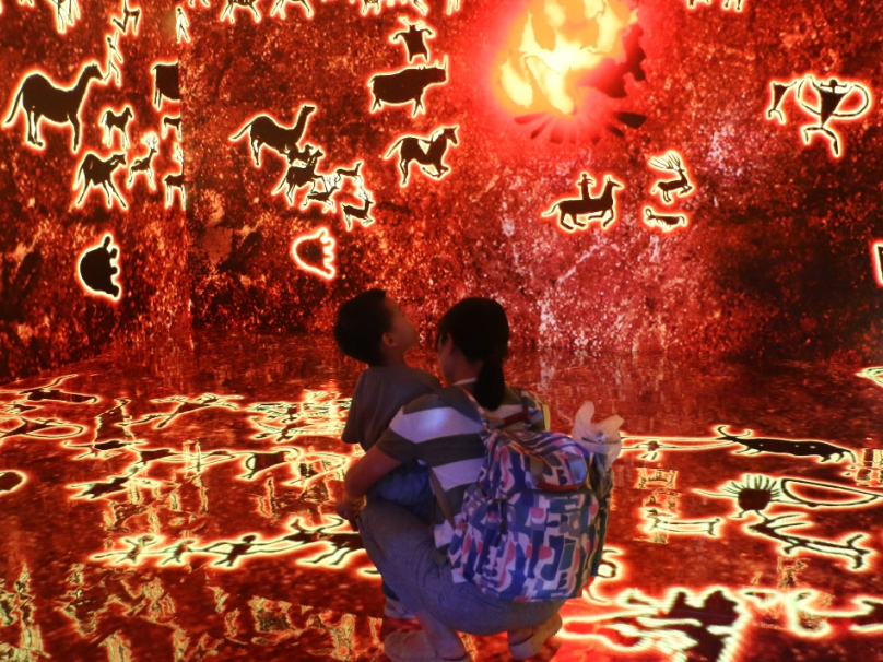 现场观众可近距离欣赏由清华大学美术学院王之纲总策划、鱼果文化出品的《“穹天玉宇”沉浸式中国藻井数字艺术体验空间》和由中央美院国际学院特聘教授、中数艺创始人王泊乔带领团队策划设计的《中纹宇宙:多觉沉浸超高清数字艺术展》。
