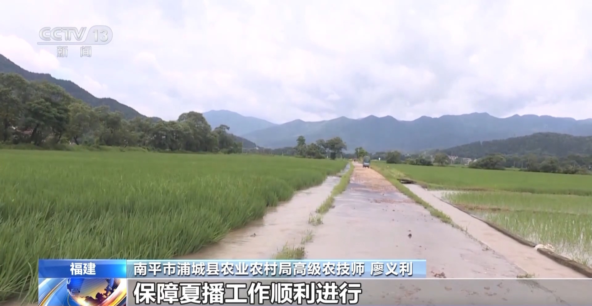 南平市浦城县农业农村局高级农技师 廖义利:对受灾的夏播农田及时开展扶苗补苗工作,对一些被冲坏的田埂进行修复,保障夏播工作顺利进行。