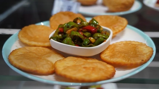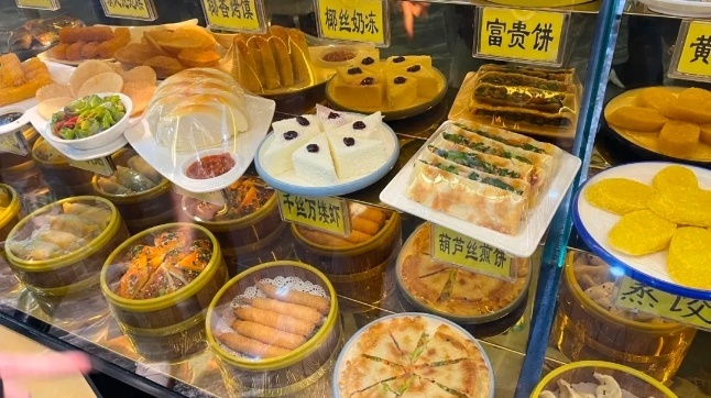 油香、馓子、拉面、香豆子花卷、八宝茶、小菜、牛肉、羊杂、小笼包、水煎包、锅贴、富贵饼、玉米饼、发糕、搅团等三十多种美食,光看名字就已让人流下口水。