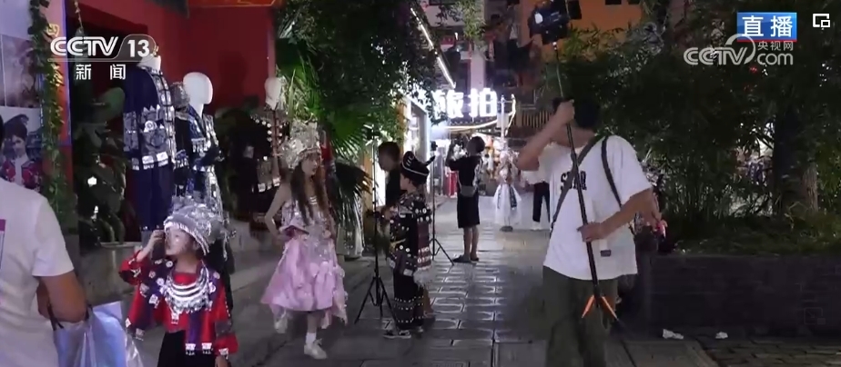 说到打卡,近期最火热的就是换装旅拍。在这样一个具有民俗特色的女儿城中,当然也少不了他们的身影。古色古香的吊脚楼与民族服饰适配度满分。土家族的服饰比较朴素,以俭朴实用为原则,比较宽松,结构简单。除了土家族之外,恩施共有28个少数民族聚居,在这里也能看到其他民族的服饰。比如喜用银饰,最为华丽的苗族服饰;擅长纺织和刺绣,以色彩艳丽著称的壮族服饰,还有彝族、侗族等。现在,这里已经有120多家主题店铺,涵盖服装出租、化妆、拍摄、相片精修等服务,价格从几十块钱到几百块钱都有,可以说是丰俭由人,满足不同游客的个性化旅拍需求。据说,这里生意最火爆的商家年收入超过百万元。截至2023年底,女儿城旅拍直接总收入约1亿元,已然成为景区的核心支柱产业。