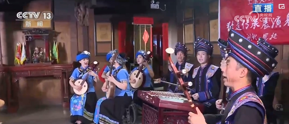 恩施扬琴又叫恩施丝弦,是湖北地方民间小曲中重要曲种之一,2008年就被列入国家级非物质文化遗产名录。在这座土家女儿城的非遗民俗馆中,整个表演场所就是土家族自家样式的“堂屋”。土家族吊脚楼大多都是木制结构,是接待客人的地方。在这里欣赏一曲恩施扬琴,仿佛真的到了主人家里,更能沉浸式感受土家儿女的热情好客。