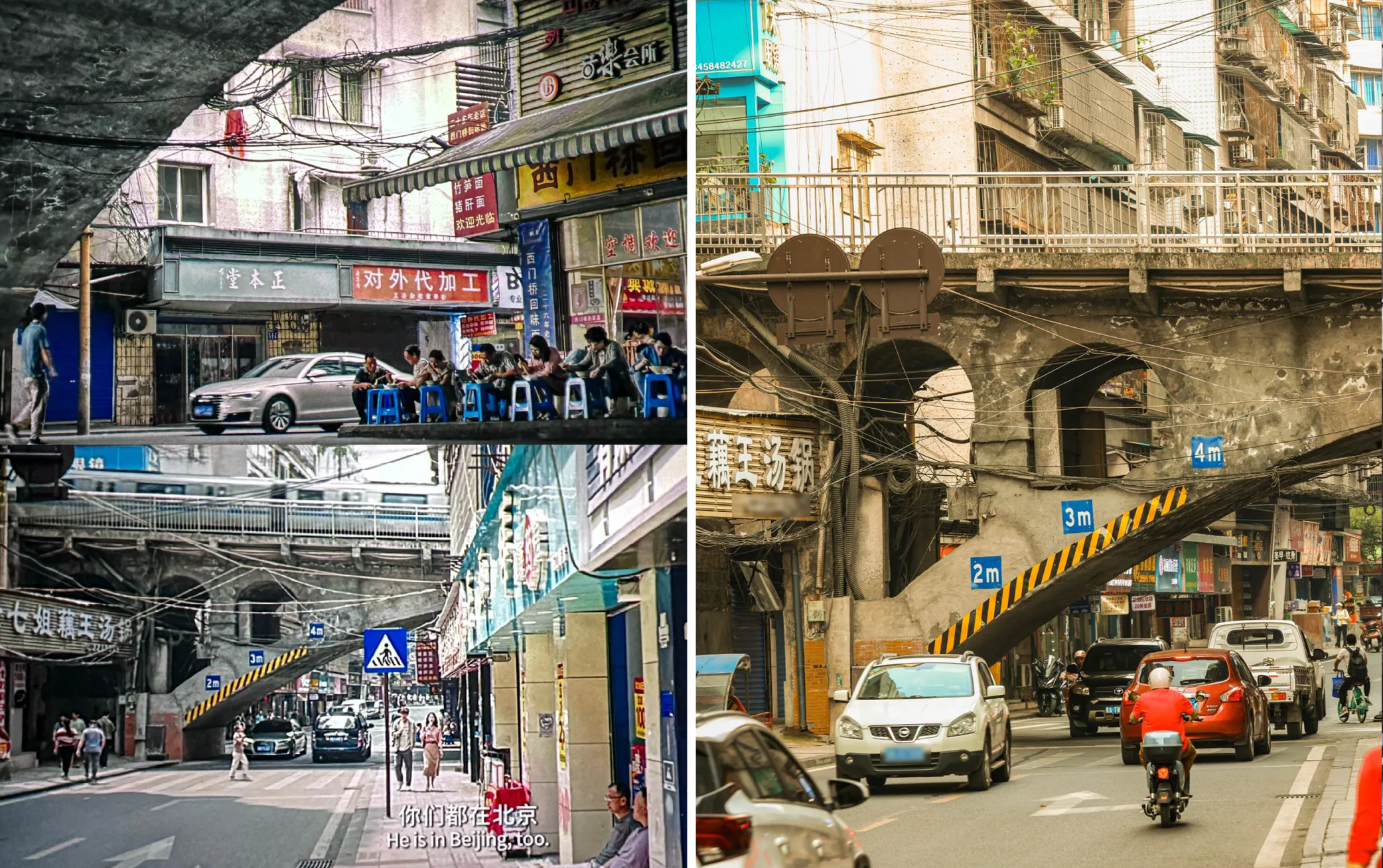 △电影中的西门桥截图(左)与西门桥实景图(右)