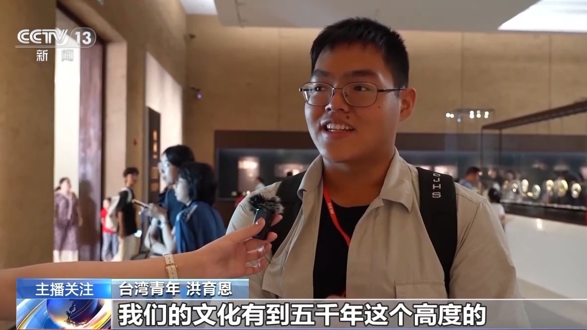 台湾青年 洪育恩:我踏上这一块土地,回到我们的故土,去感受一下到底现在有什么不一样,而不是听信谣言,我踏上来,感觉繁荣美好。对于文物大家都很努力地去保存,对我来说,如果有幸真的能来大陆进行考古,我是蛮希望能来的。