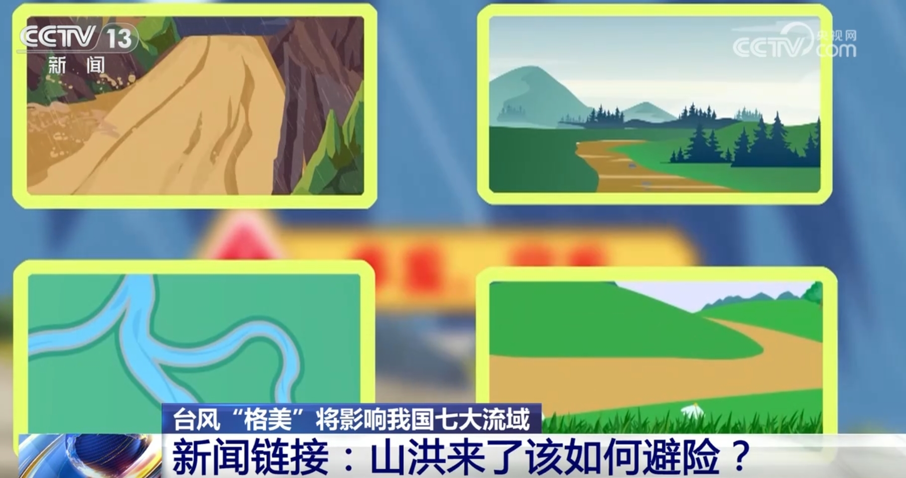 央视网消息:台风“格美”一路北上,影响山区众多,很容易诱发山洪灾害。因此,山洪灾害是近期防御的重点之一。那么,山洪来了该如何避险?