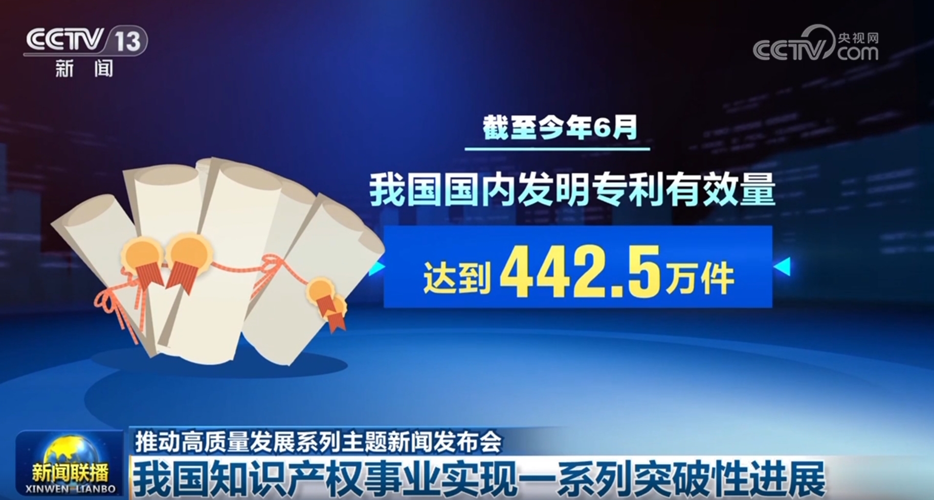 截至今年6月,我国国内发明专利有效量达到442.5万件,权利人为企业的发明专利占比提升到72.8%,企业创新更加活跃。