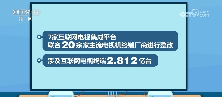国家广播电视总局强化互联网电视播控管理,强化了互联网电视集成平台在用户管理、计费等方面的主导地位。7家互联网电视集成平台联合20余家主流电视机终端厂商进行整改,涉及互联网电视终端2.812亿台。