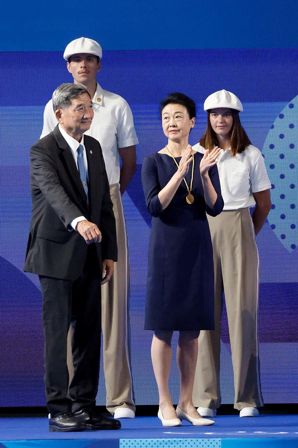 当地时间27日,巴黎奥运会首金在射击10米气步枪混合团体项目中产生,00后组合黄雨婷/盛李豪为中国代表团取得开门红,而为他们颁奖的,正是冬奥冠军、国际奥委会运动员委员会委员张虹。