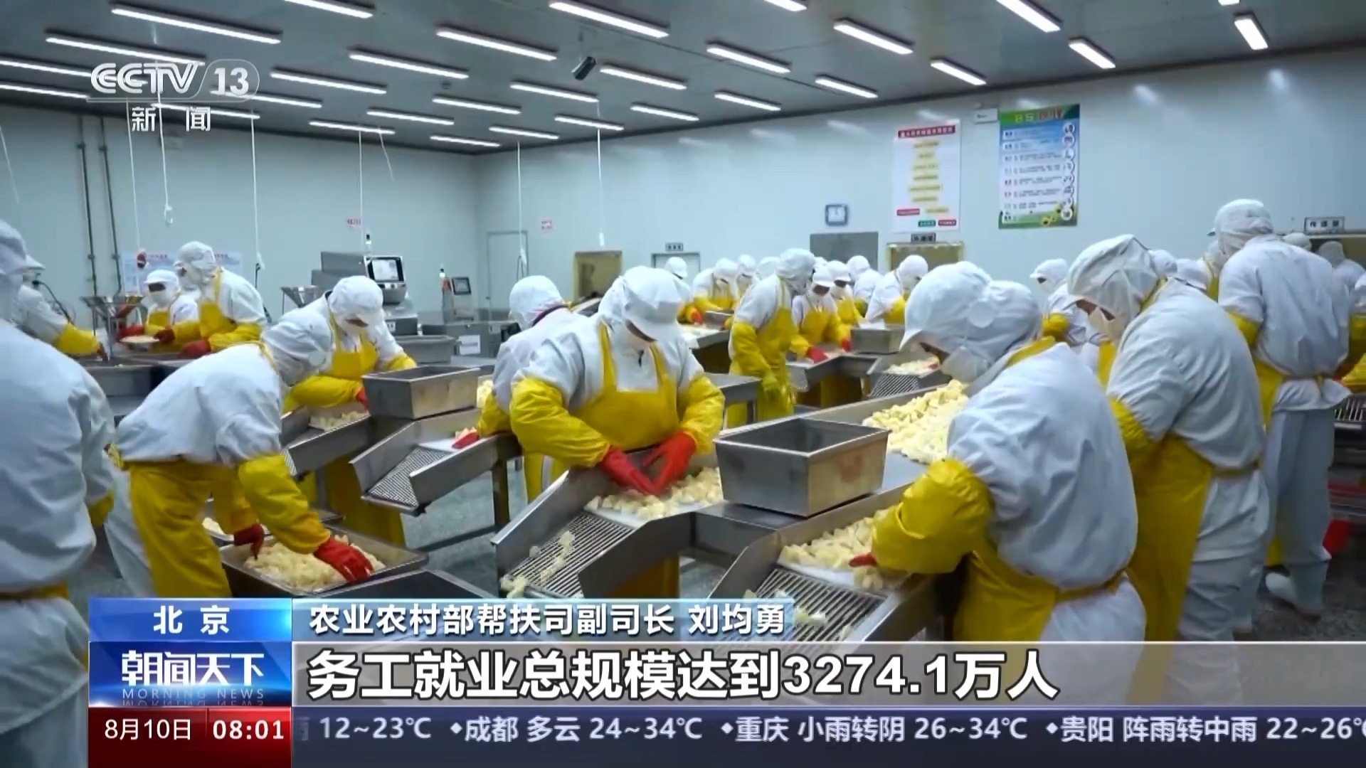 农业农村部帮扶司副司长 刘均勇:今年上半年,全国脱贫人口务工就业总规模达到3274.1万人,稳住了脱贫人口2/3以上的收入。