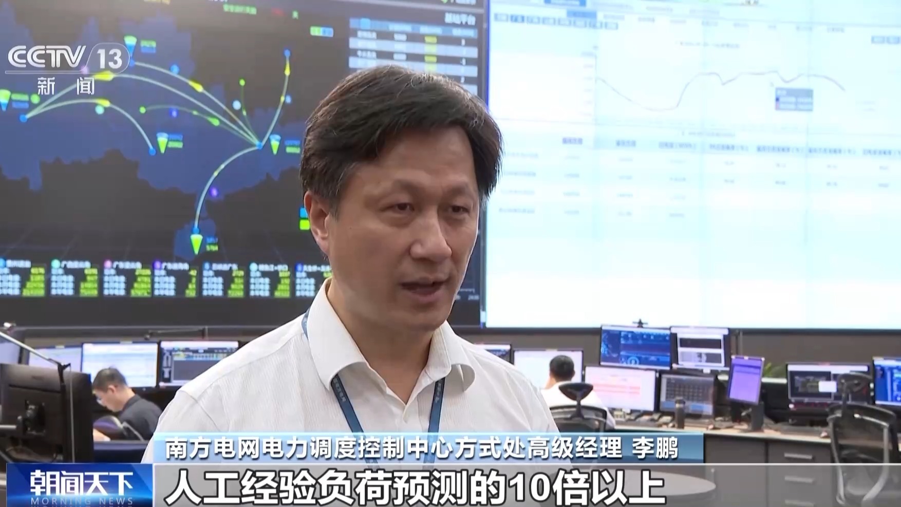 南方电网电力调度控制中心方式处高级经理 李鹏:人工智能AI,它的工作效率是传统基于人工经验负荷预测的10倍以上。我们可以更早、更主动安排包括新能源、抽水蓄能在内的各类调节资源。