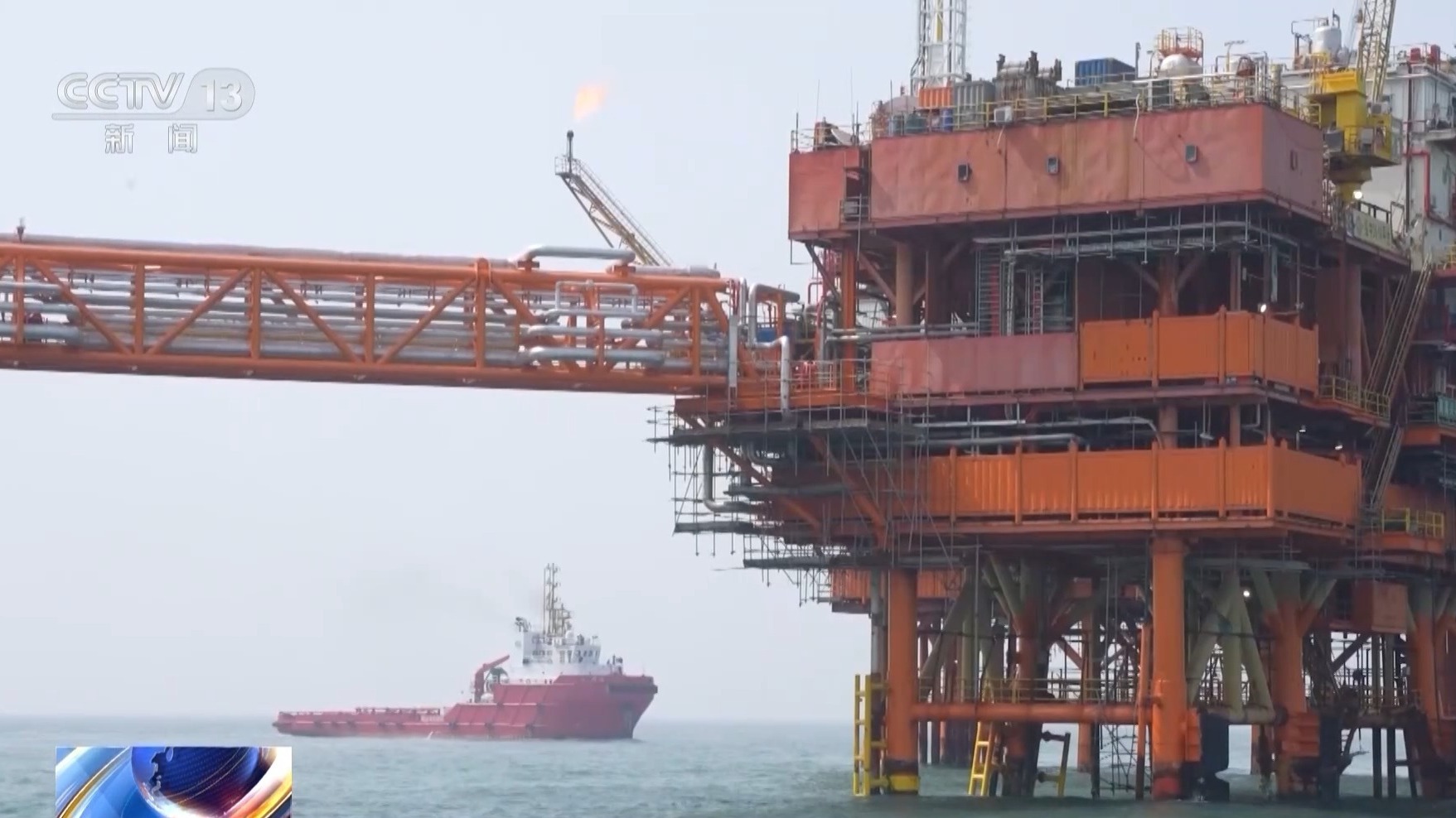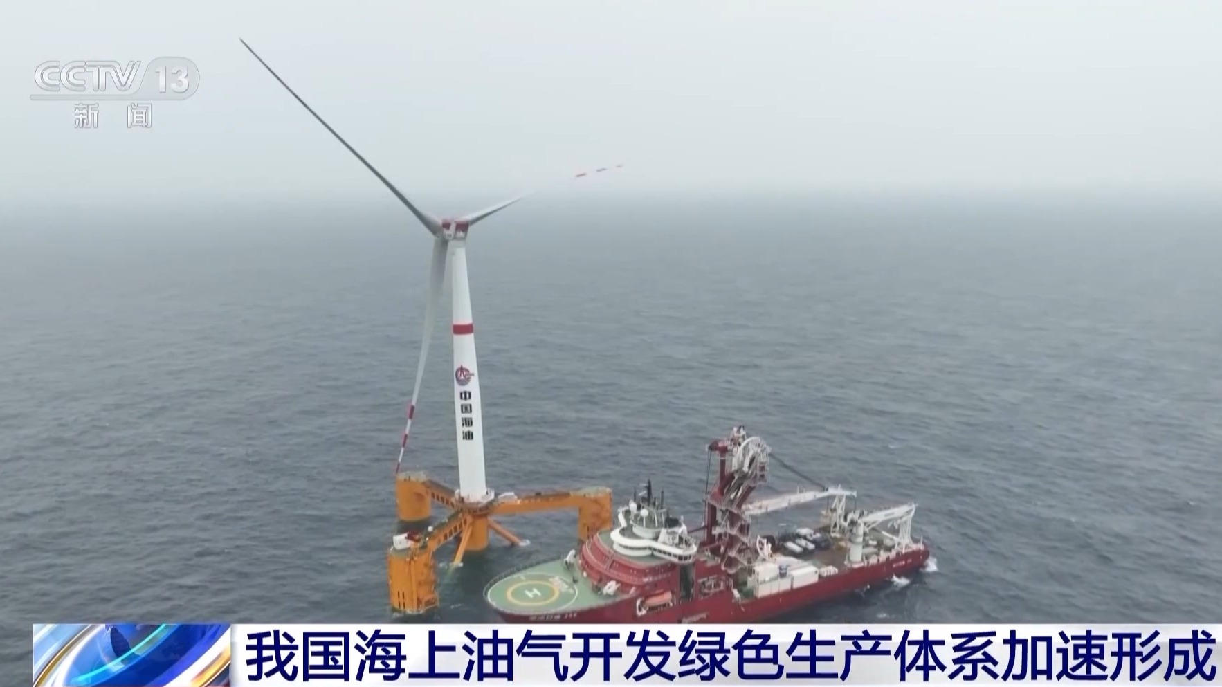 画面上是不久前我国最大规模海上岸电应用工程成功送电的现场。简单来说,就是海上平台不用再自己发电,而是通过电缆,从陆地源源不断地向海上生产平台输送电能,这样一来,会大大降低海上油气平台的碳排放。眼下,我国在海上油气平台中使用的绿色低碳技术还不止这些。