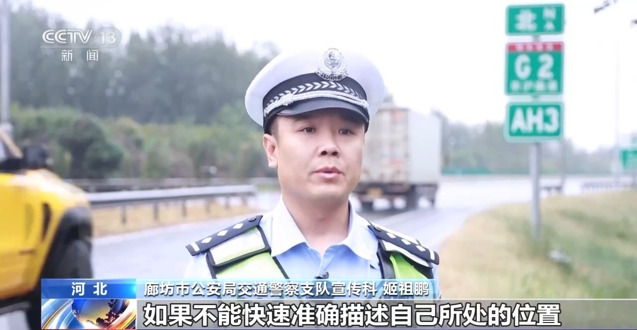 廊坊市公安局交通警察支队宣传科 姬祖鹏:在突发情况下,驾驶人在报警时如果不能快速准确描述自己所处的位置,会导致交警无法及时调派施救力量赶到现场,容易导致“二次事故”的发生。